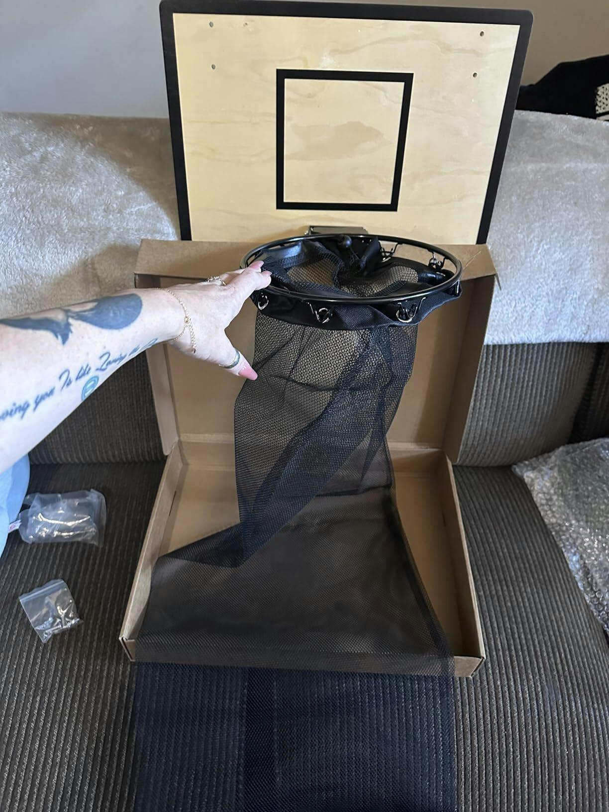 The authentic basketball rim and wooden backboard give that satisfying swish sound, encouraging kids to keep playing (and cleaning). Many families create fun challenges:
